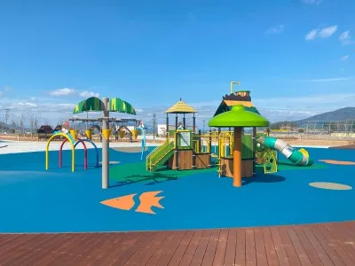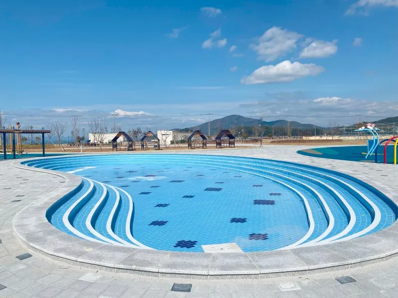 무엇보다 남해에코촌은 아이들을 위한 놀이터와 수영장이 넓게 조성되어 있습니다. 여름이면 물놀이도 할 수 있는 물놀이 놀이터도 있고, 아주 넓은 야외 수영장도 있어 여름이면 남해에서 가장 핫한 여행지가 되지 않을까 기대되는 곳이었습니다.