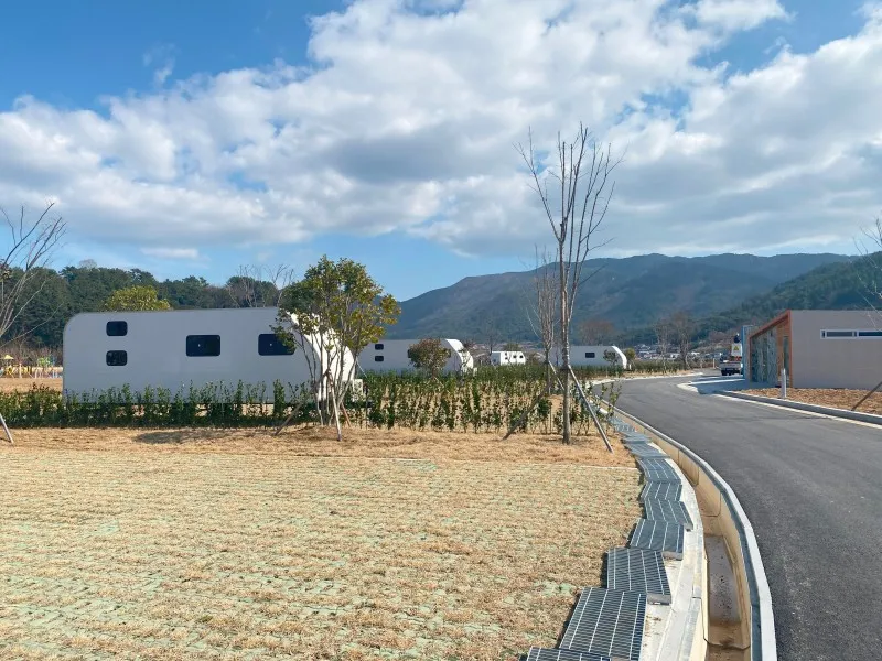 카라반 캠핑장 사이트 규모도 큰 편이었습니다. 카라반 캠핑장 내부는 둘러볼 수 없었지만 신상 캠핑장이니 깔끔하게 잘 되어 있지 않을까 싶어요.