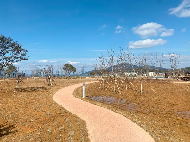 남해에코촌이 있는 이곳은 바다와 민물이 만나는 기수지역과 해안 숲을 연계, 생태계를 보전하는 동시에 숙박과 관광, 교육, 체험 등을 융·복합한 생태관광의 거점 지역으로 활성화하기 위해 총 5만 5873㎡ 규모로 에코센터와 체험관 각 1동, 힐링 숙박동 15동, 기수지역 관찰원, 비오톱 공원, 마을숲 체험장 등을 조성한다고 해요.