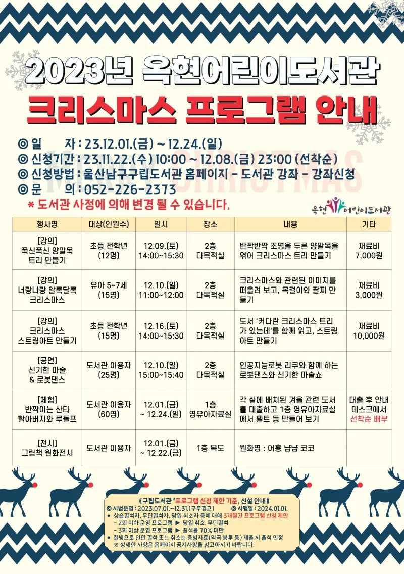 🎄 문의 : 옥현어린이도서관 (☏052-226-2373)