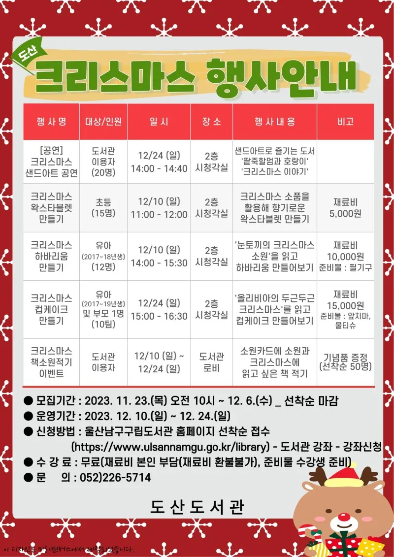 울산남구 구립도서관 크리스마스 행사 신청 안내