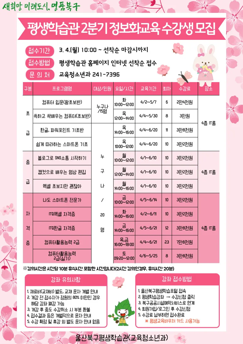 #울산 #울산북구 #울산북구평생학습관 #평생학습 #평생학습대학 #2분기 #수강생모집