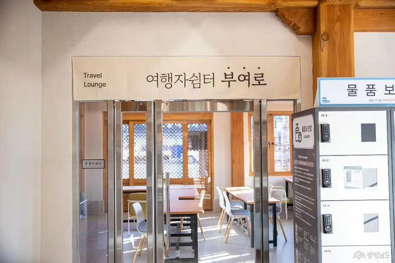 1층과 2층에는 각각 화장실이 위치하고 있어 기본적으로 여행자 뿐만 아니라 부여시장을 이용하는 지역주민들과 상인들도 편리하게 이요할 수 있을 것 같았습니다. 1층에는 선물가게와 휴게공간(라운지)이 위치하고 있었는데요. 하계와 동계에 무더위와 추위를 피할 수 있는 곳으로 큰 역할이 기대됩니다. 최첨단 물품보관함도 있어서 여행자들이 부여시장과 상권을 편리하게 이용하기에도 좋겠습니다. 부여군은 향후 백강문화관에서 다양한 문화행사, 버스킹 등의 행사를 기획중이라고 하네요.