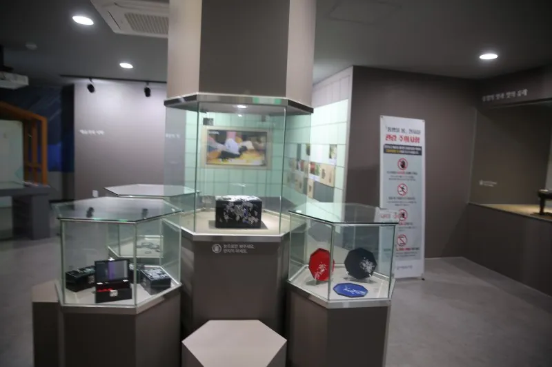 통영의 대표 전통공예이기도 한 나전칠기로 만들어진 제품들도 전시해 두었습니다. 통영에서는 전통공예등을 활용한 다양한 프로그램을 운영하고 있는데 나전칠기를 활용한 공예품은 전복 등 해양 부산물을 활용한 통영의 특산품으로, 친환경적일 뿐만 아니라 전통적·예술적 가치도 높아 프로그램에 참여자들의 만족도가 높다고 합니다. 치매와 관련된 프로그램도 연관되어 있다고 합니다.