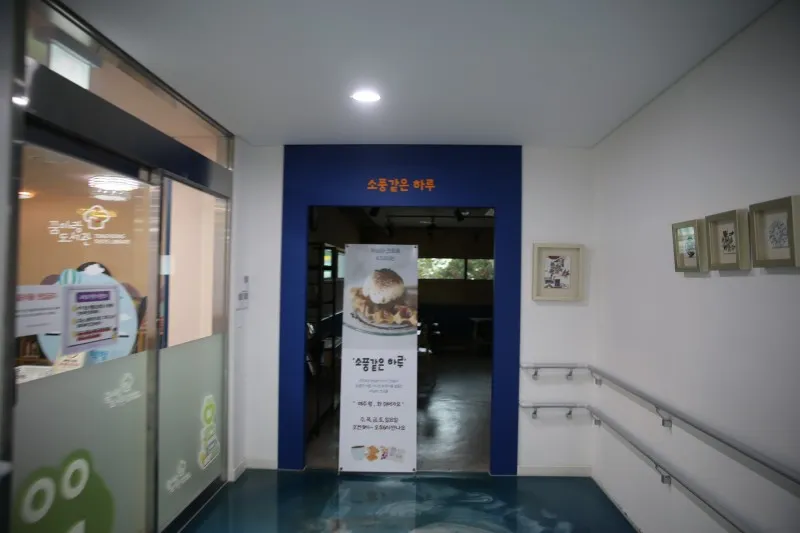 옛날에는 산양도서관이라고 오래된 도서관이 자리했던 곳이 꿈이랑 도서관으로 변신을 하고 있었습니다.