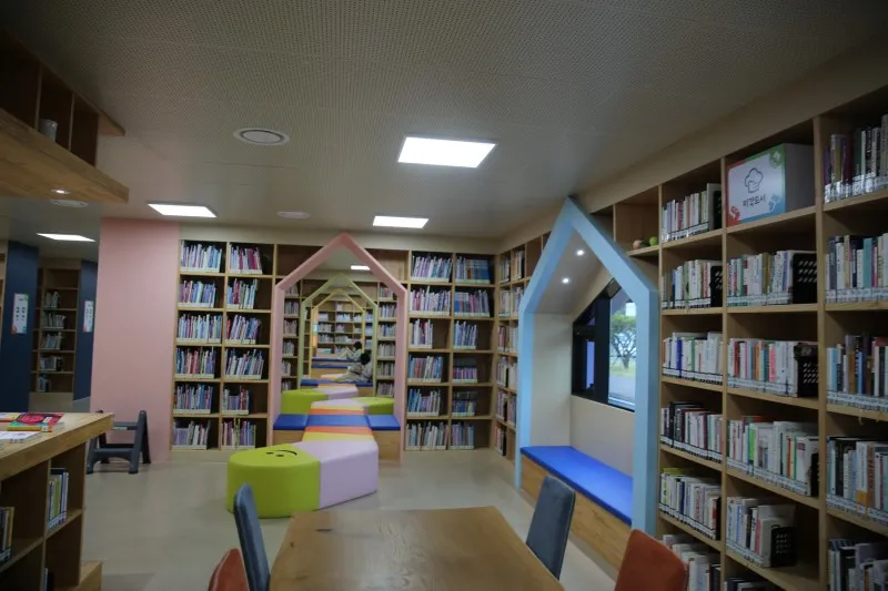 색은 사람들에게 다양한 감정의 변화를 만들어주기도 합니다. 도서관이 다양하게 채색이 되고 파스텔 느낌의 공간들도 조성을 해두어서 아이들이 즐겁게 방문할 수 있도록 만들어 두었습니다.