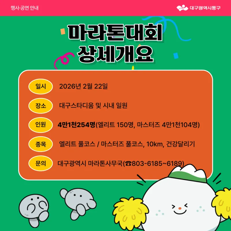 📞문의 : 대구광역시 마라톤사무국(☎803-6185~6189)
