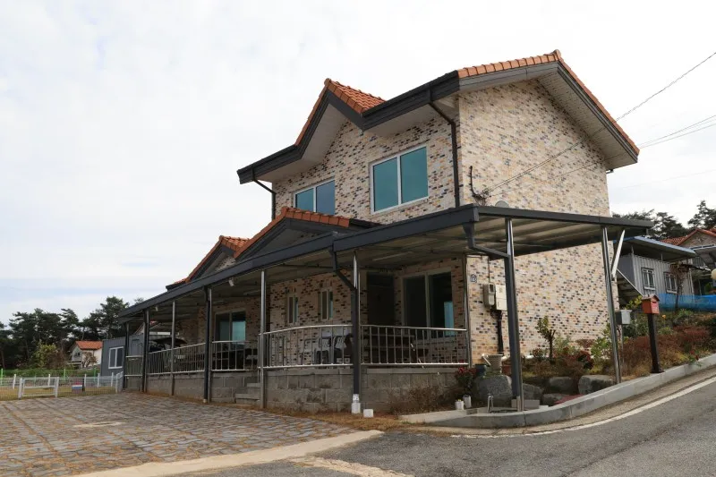 반려견 놀이터가 한눈에 들어오는 아리울 펜션은 왼쪽부터 아리울 펜션 대표가 거처하는 곳을 지나 복층으로 건축된 쌍둥이 펜션은 102호, 101호로 두동이 이어져 있습니다.