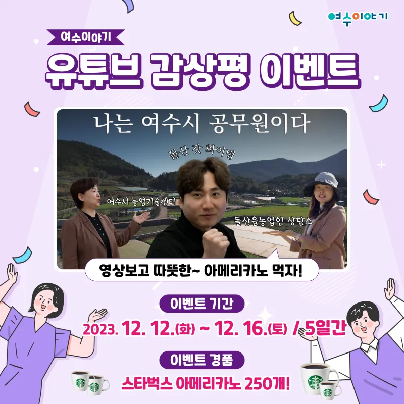 (12/12~12/16) 여수이야기 유튜브 감상평 이벤트(농업기술센터) '감상평 쓰고, 스벅 아메리카노 받자!'
