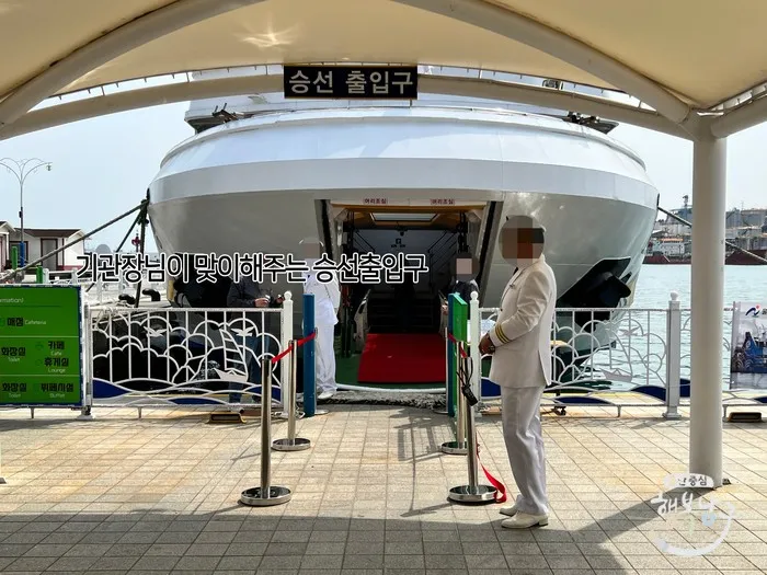 승선 출입구에는 벌써 멋진 승선복을 입은 선장님들이