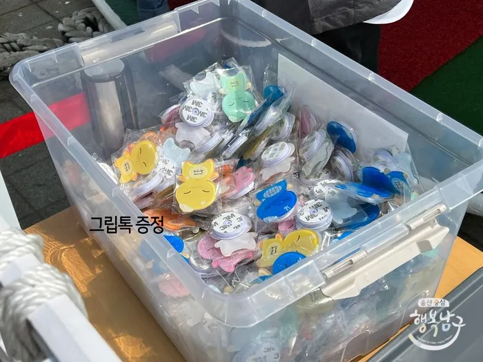 승선하는 모든 분들에게 휴대폰 그립톡 증정해 드렸습니다.