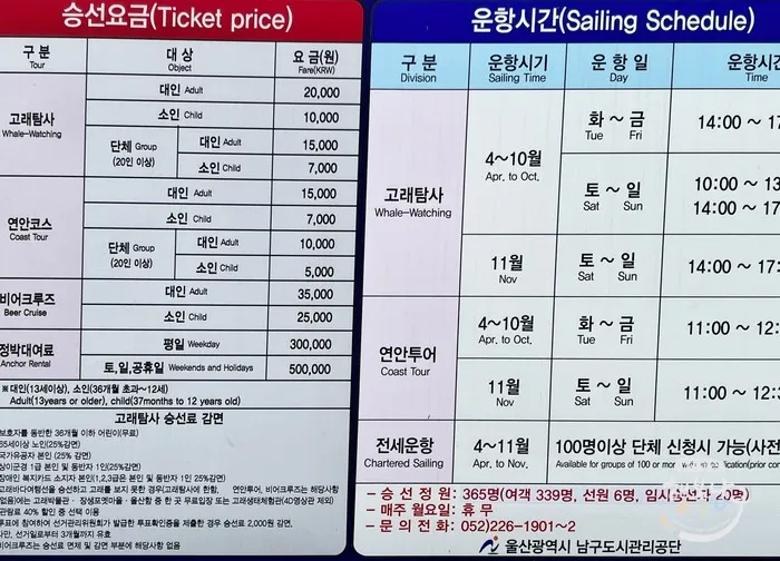 1. 온라인 예약 : 울산 고래바다여행선 홈페이지 (링크 첨부)