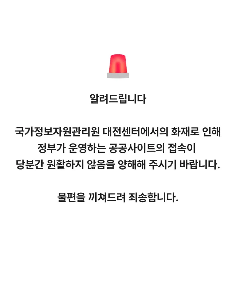 국가정보자원관리원 대전센터에서의 화재로 인해