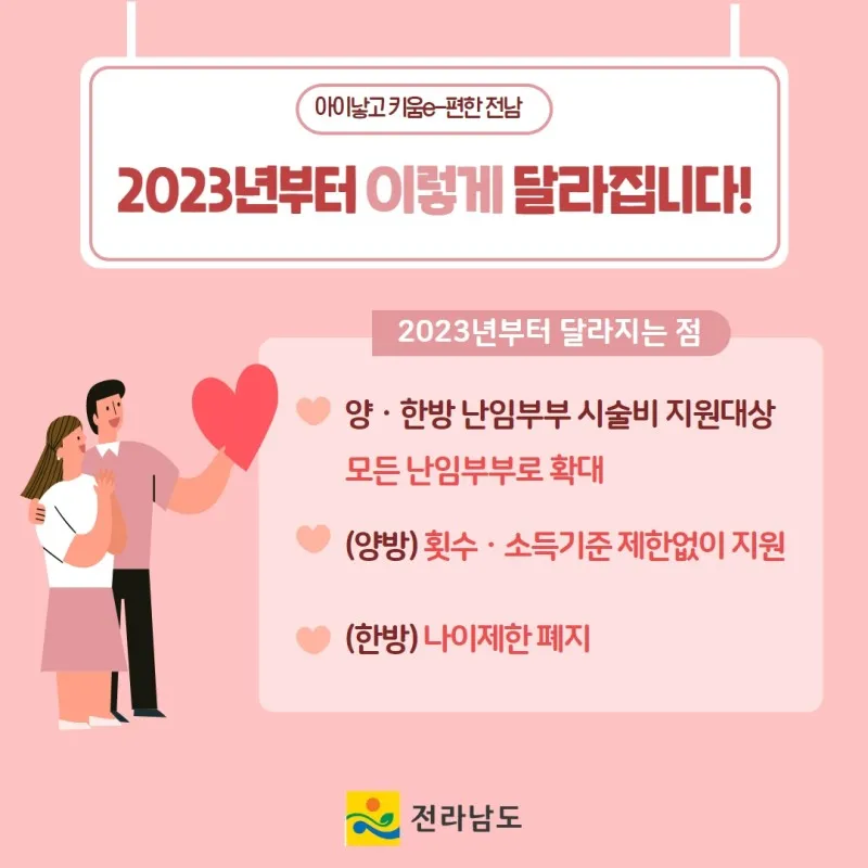 확대된 전남형 난임부부 시술비 지원 대상 및 지원 내용 안내