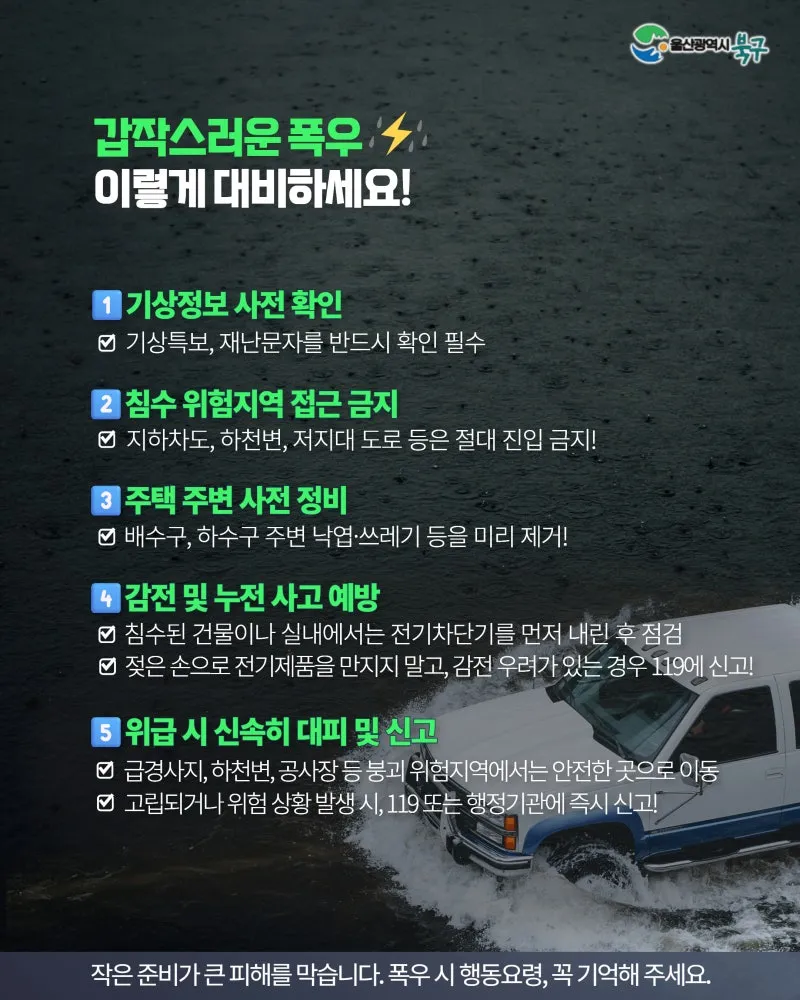 #울산북구 #여름안전가이드 #폭우편 #폭우대비수칙 #집중호우 #기상특보확인