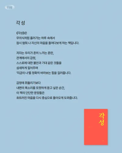 내면을 조용히 들여다보도록 돕는 책이에요.