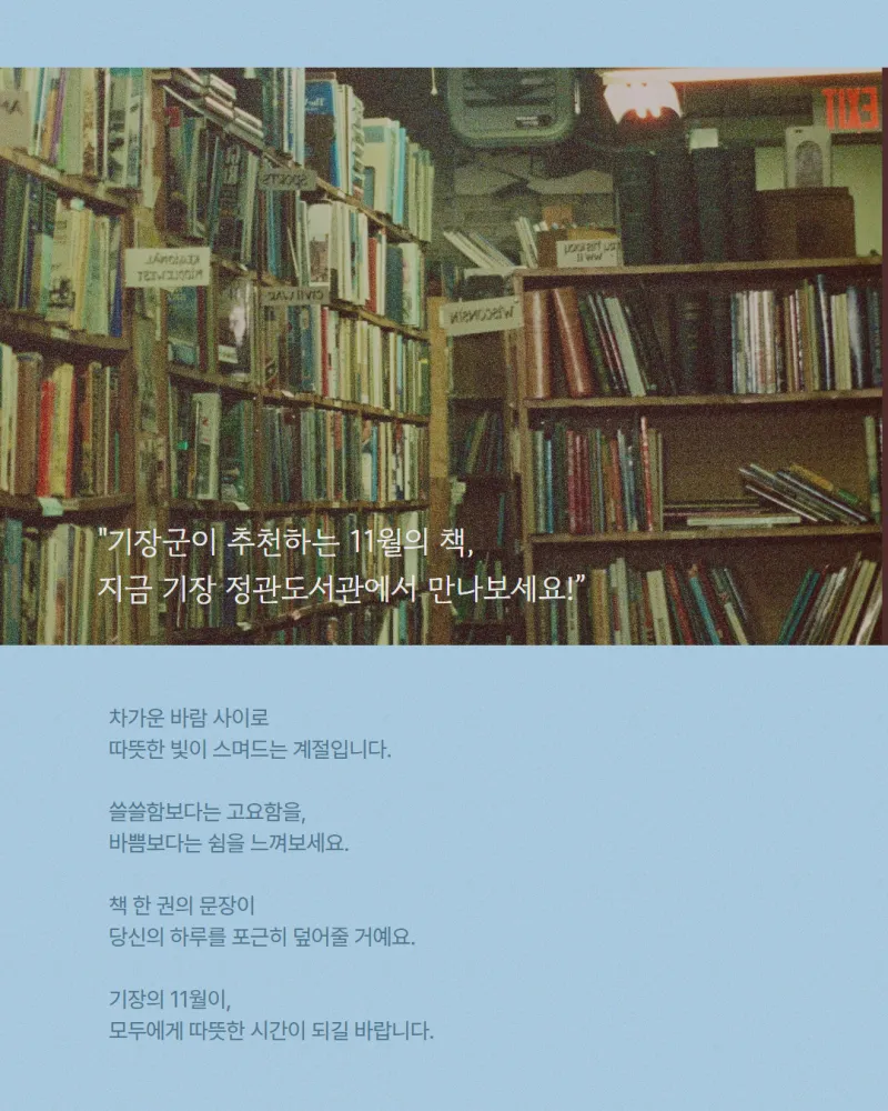 기장군의 11월 북큐레이션 (책 추천!)