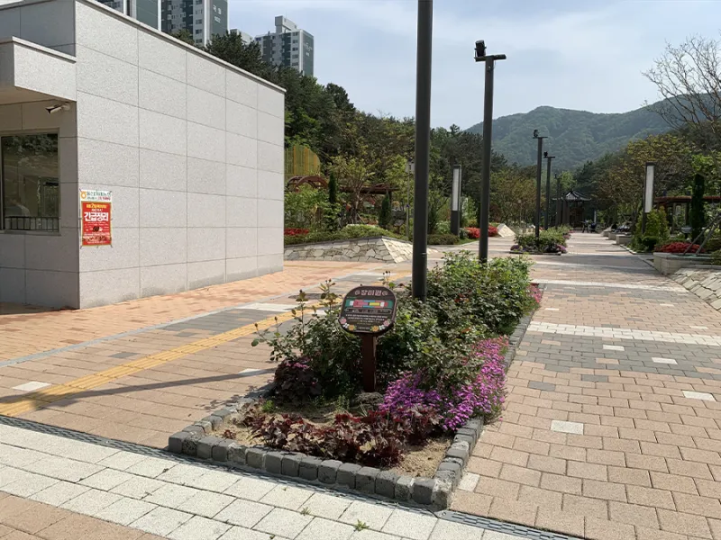 이전에는 물이 흘렀던 곳에 풀이 가득하더라고요. 산책로 곳곳에 왕벚나무와 단풍나무, 매화나무, 느티나무 길을 조성하여 계절마다 새로운 느낌 속에서 산책을 만끽할 수 있도록 돕습니다.