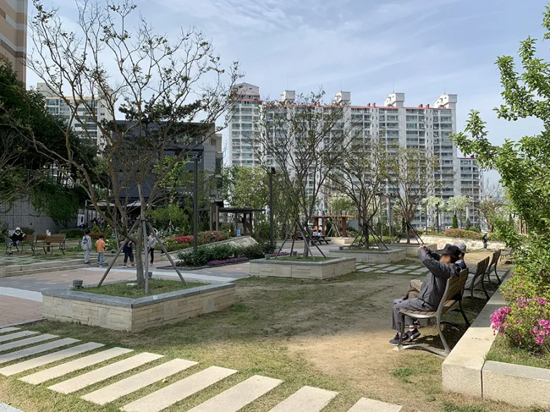 인근의 아파트 단지와도 자연스럽게 이어질 수 있도록 되어 있다는 점 역시 참 마음에 들더라고요.