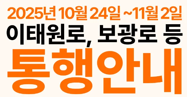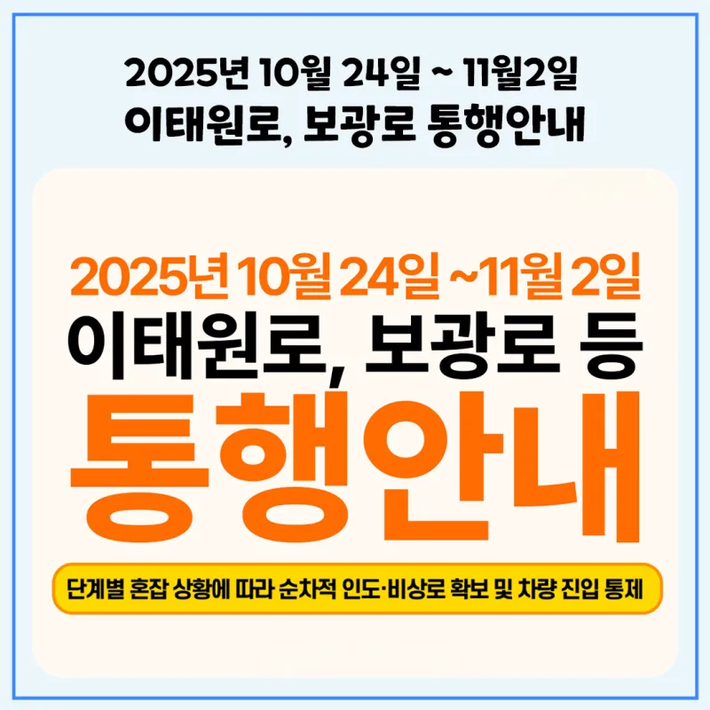 2025년 10월 24일 ~ 11월2일 이태원로, 보광로 등 단계별 도로통제에 따른 통행안내