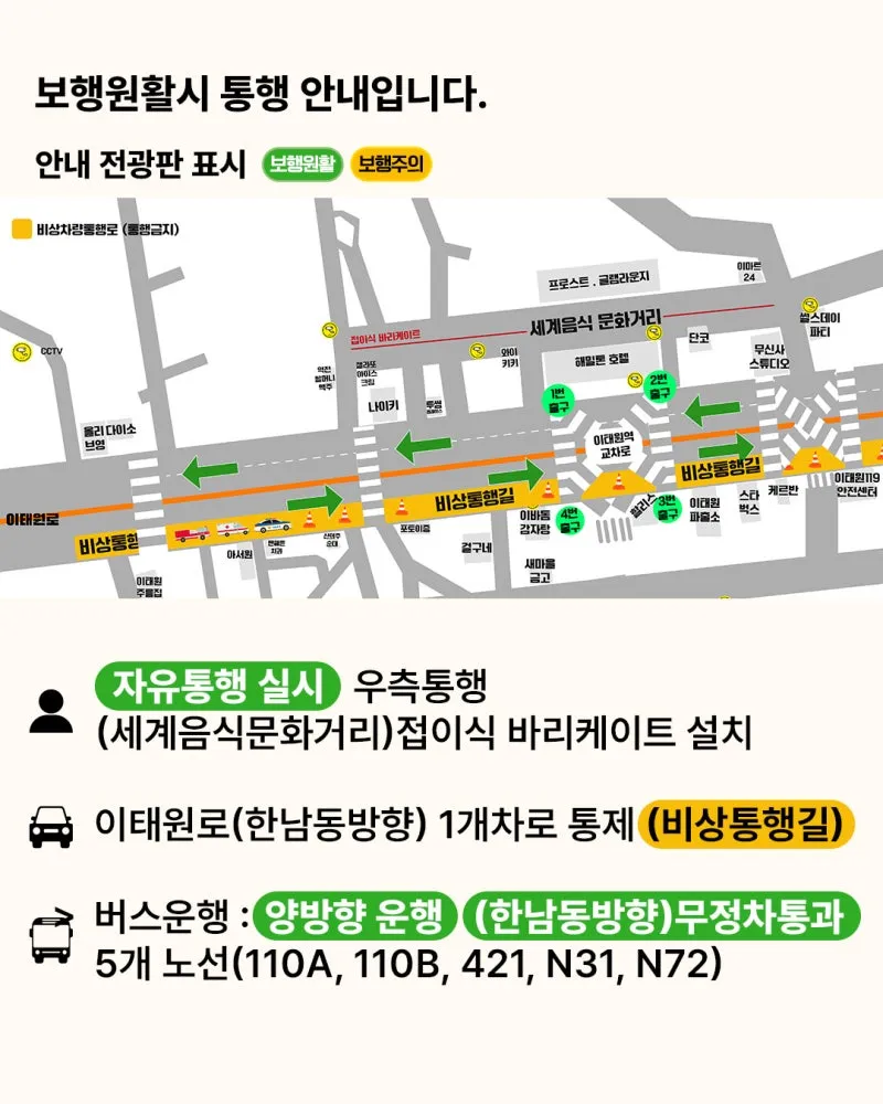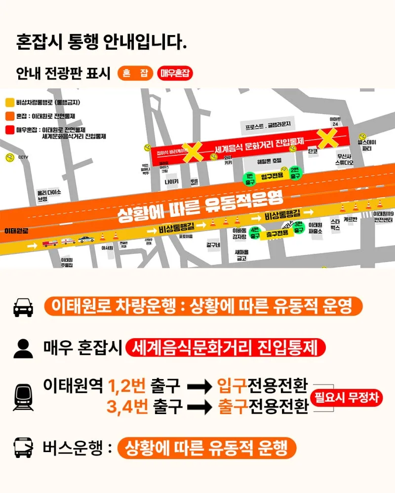 - 이태원로 차량운행 : 상황에 따른 유동적 운영