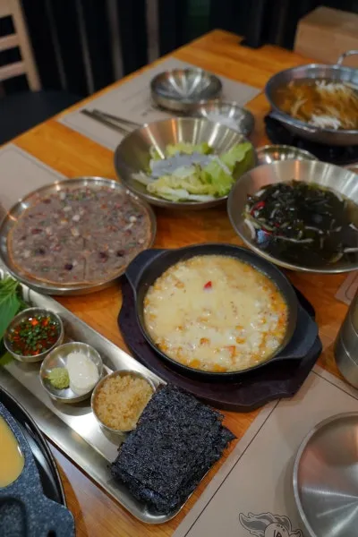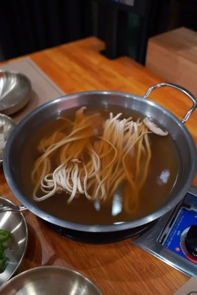 콘치즈 퐁듀, 칼국수가 나옵니다