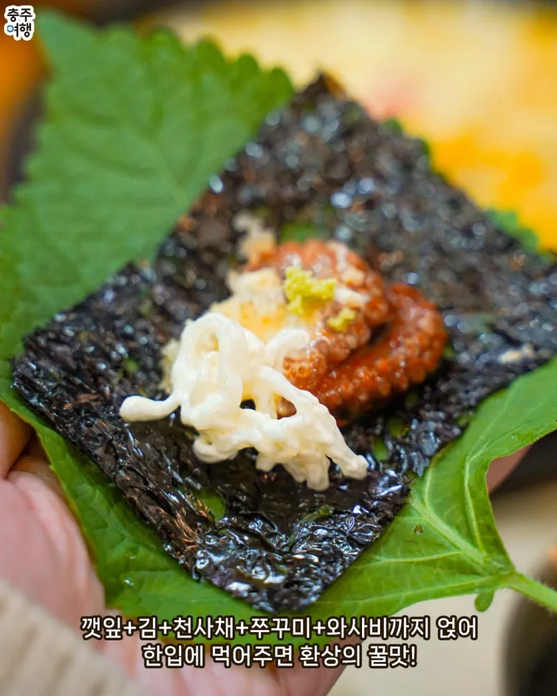 깻잎+김+천사채+쭈꾸미+와사비까지 얹어