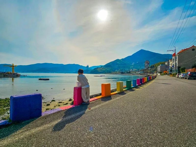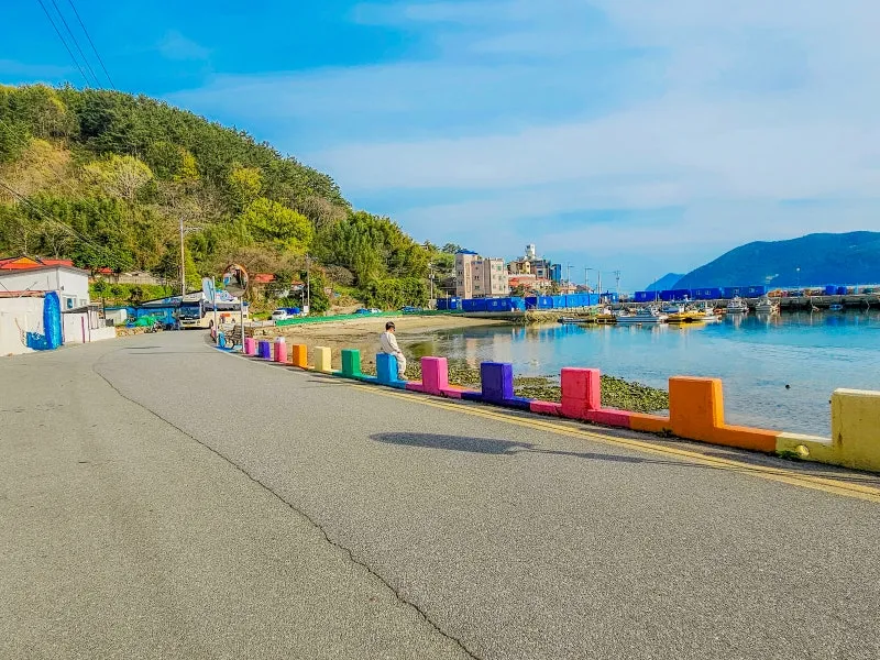옥화마을에 제일 먼저 도착하면 무지개 해안도로가 보여요. 길지는 않지만 알록달록한 색감이 입구에서부터 설렘을 주는 곳입니다.