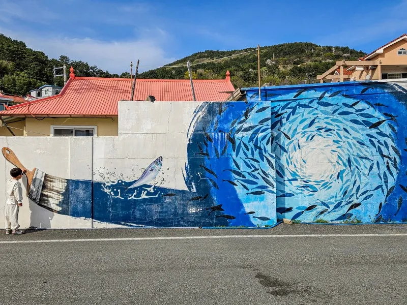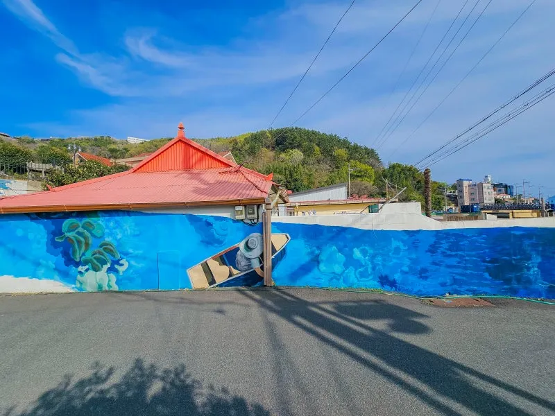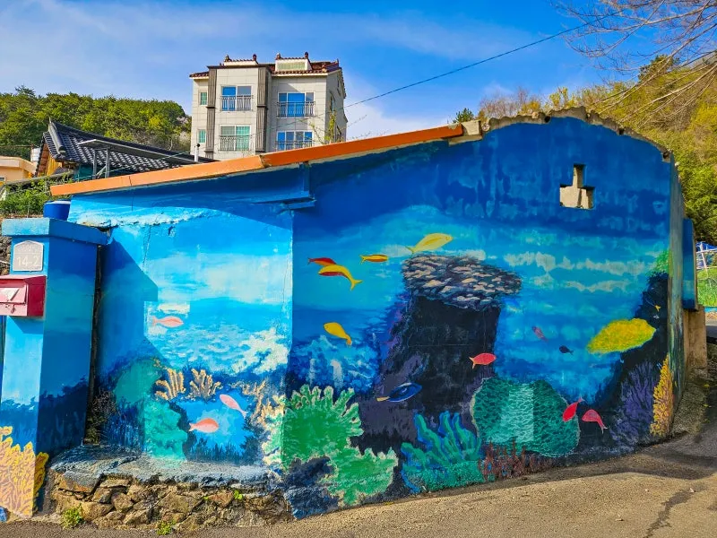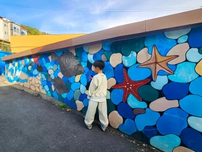 어촌마을의 정취와 바닷속 예쁜 벽화가 궁금하다면 거제 옥화마을로 놀러 오세요.