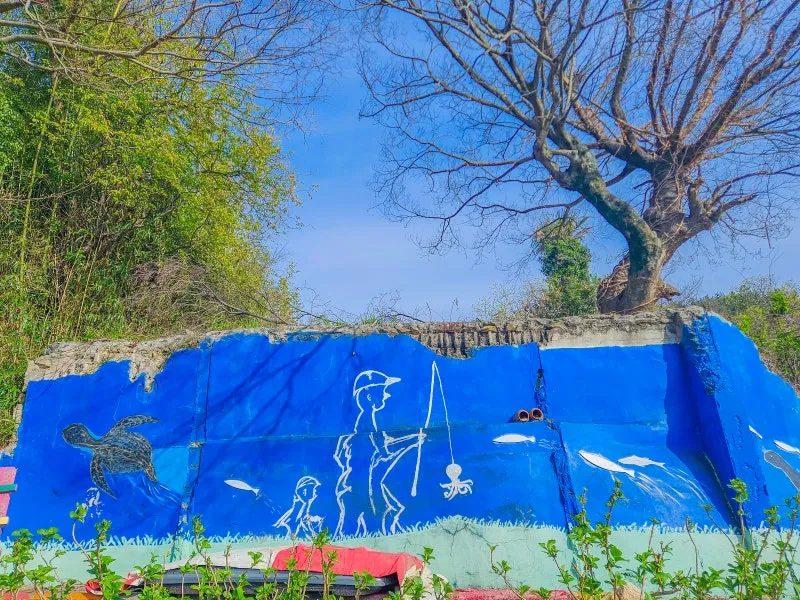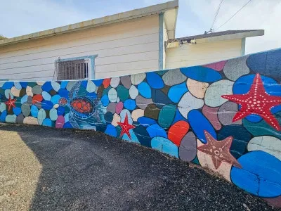 또 문어외에 불가사리, 거북이, 가자미가 반겨주는 낮은 담벼락도 있어요.