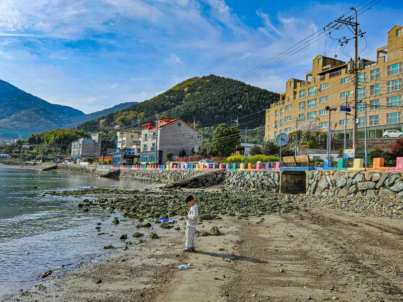 짧지만 따뜻하고 아름다운 느낌이 많이 드는 옥화마을의 벽화 구경을 마치고 저희는 진짜 바다 구경하러 잠깐 내려왔어요. 거제도는 어딜 가도 바다를 만날 수 있어서 아이와 함께 다니기 너무 좋아요.
