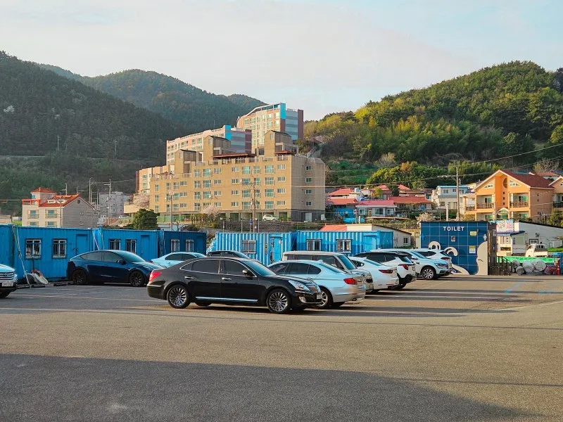 무지개 해안도로를 조금 지나치면 공용주차장이 나오는데 여기에 주차하고 옥화마을로 걸어오면 됩니다.