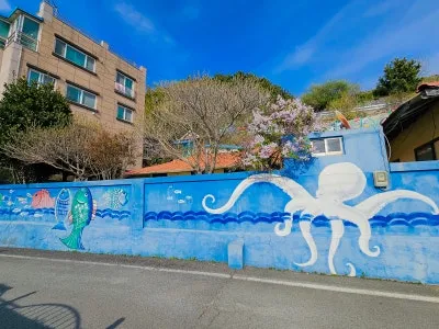 옥화마을이 문어마을이다보니 문어벽화가 있어요.