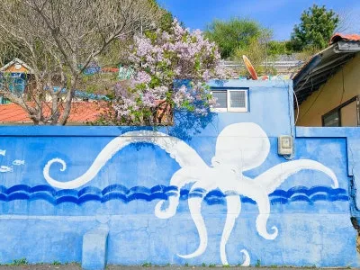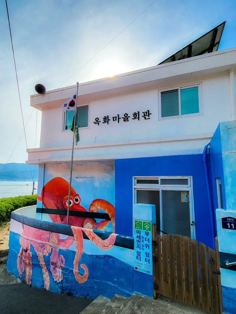 옥화 마을은 물이 맑아 예전부터 문어 주산지로 유명한 어촌마을이였는데, 미술을 전공한 이장님이 곳곳에 문어 등을 주제로 바닷속 이야기를 벽화로 그리면서 지금은 옥화마을이자 벽화마을로 불리는 거제의 핫플레이스입니다.