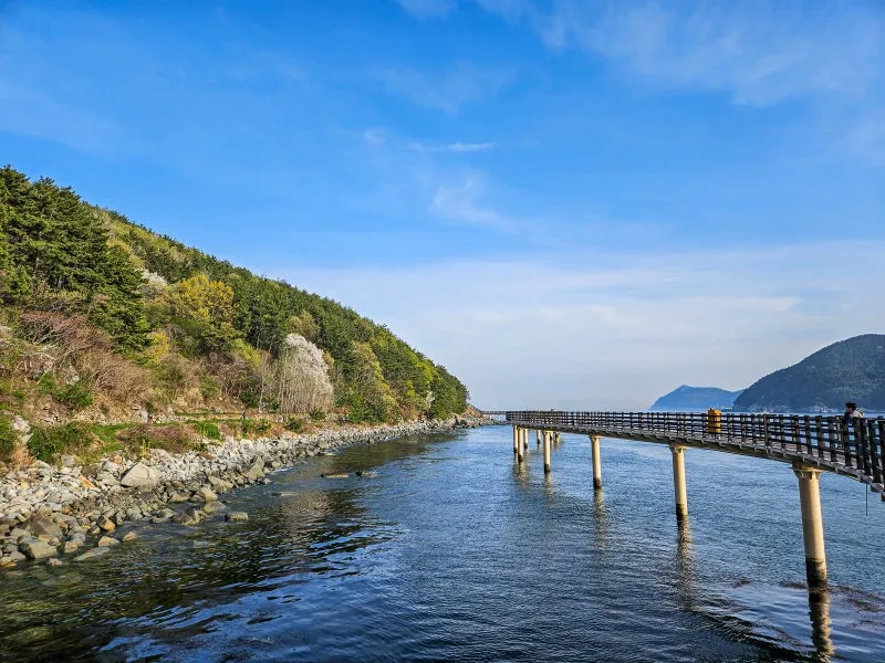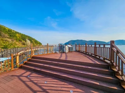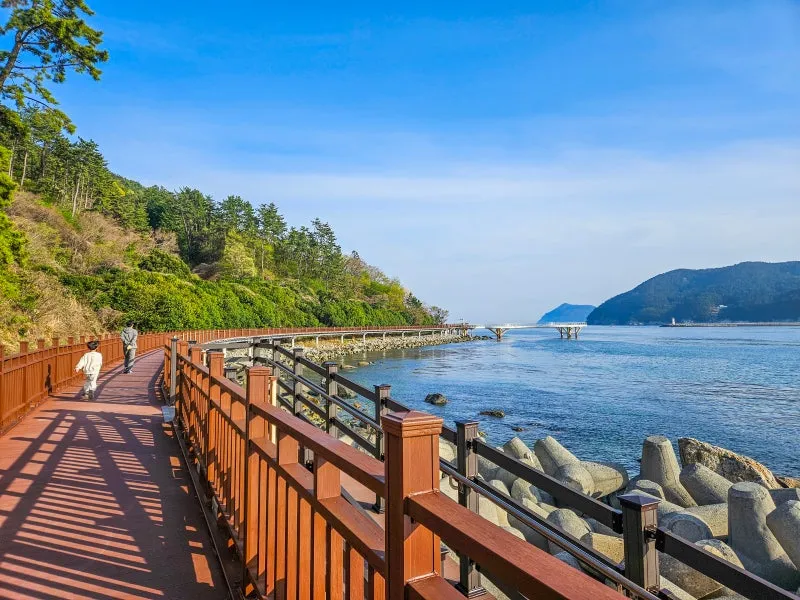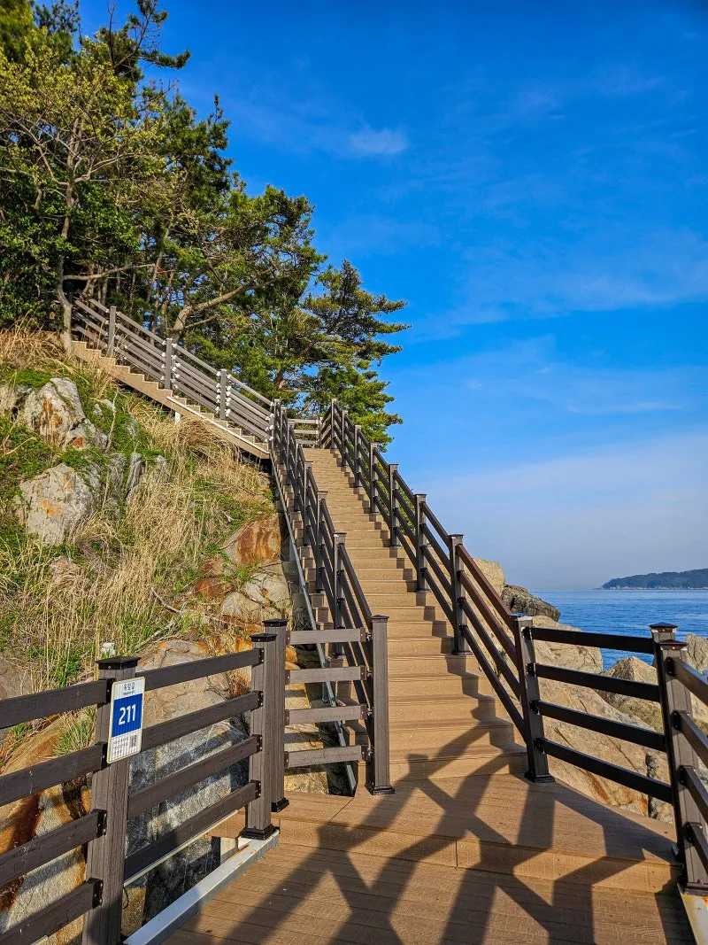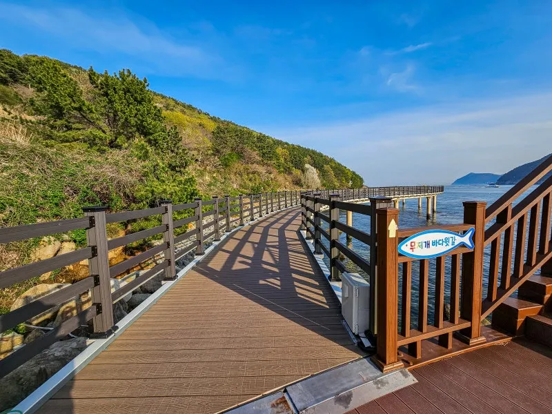 옥화마을만 보고 돌아가기 아쉽다면, 이곳에 따스한 날씨를 즐기며 걷기 좋은 해안데크길이 있어 산책도 즐기고 갈 수 있어요.