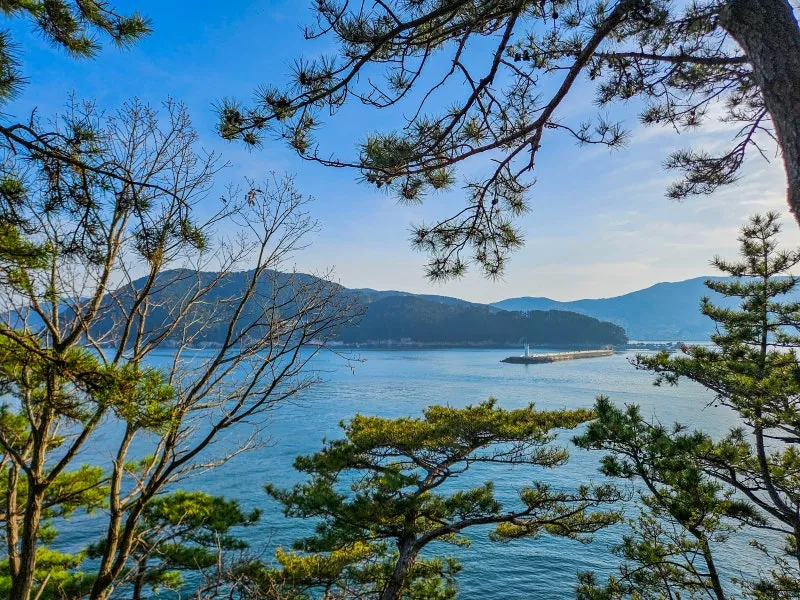 정자에서 보이는 지세포 방파제. 여기서 보는 뷰도 진짜 아름다워요.