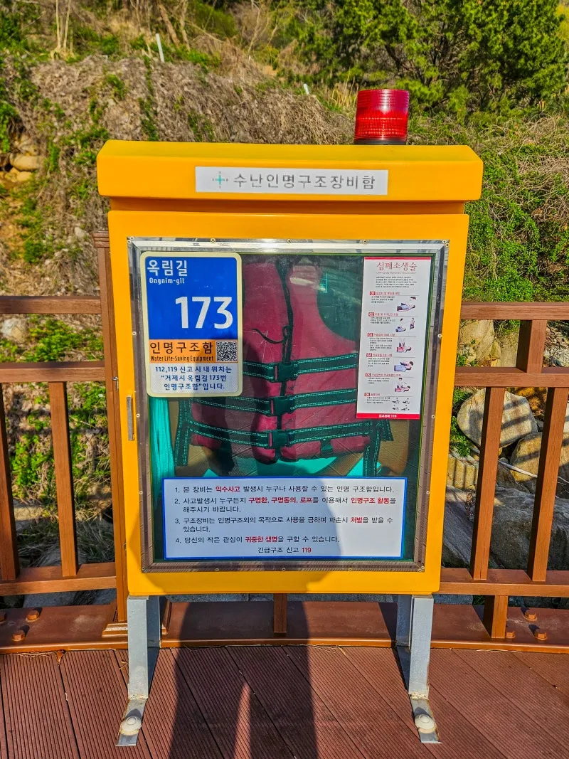 돌아가면서 보니 익수사고를 대비해 곳곳에 인명 구조함 설치되어 있었어요. 안전관리도 잘 되어 있는 곳입니다.