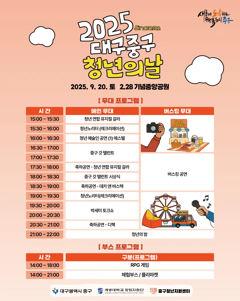 대구 가을 축제! '2025 대구 중구 청년의날' 축제에서 함께 즐겨요!