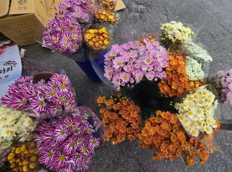 시장 입구에 들어서자 요즘 한창 향을 뽐내고 있는 색색 종류의 국화가 반갑게 맞이하는 것 같아서 기분이 좋았어요.