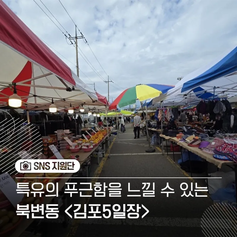 요즘 같은 나들이하기에 좋은 날씨 김포 여행 중이시라면 재래시장인 김포 북변 오일장에 들러보세요. 옛 정취와 활기가 살아있는 전통시장의 매력을 온몸으로 느껴볼 수 있을 거예요.