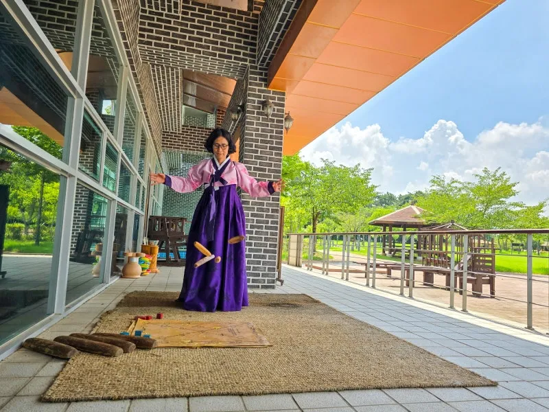 실내에서 나와서 전래놀이 체험 윷놀이는 빼놓을 수 없는데요, 참고로 한복 체험은 선선한 가을도 괜찮겠지만 생각보다 참을만했다는 것 안 거짓말입니다. 표정 속에서 더위를 느낄 수가 없네요.^^