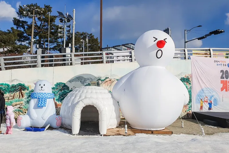커다란 눈사람과 이글루가 있어 아이들이 이굴르 속을 들어왔다 나갔다하며 신나는 겨울을 즐깁니다.