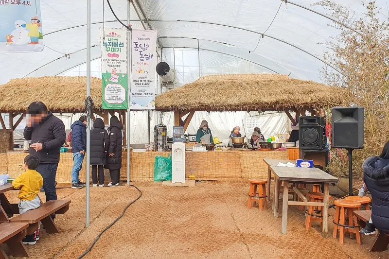 추울 땐 비닐하우스에 들어와 몸을 녹이며 농경문화체험을 할 수 있어 좋아요.