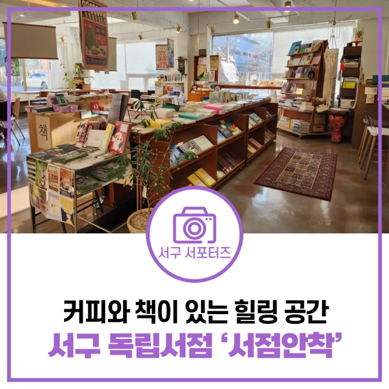안녕하세요 여러분! 서동이에요o(^▽^)o 벌써 올해 마지막 달인 12월이 찾아왔습니다. 오늘은 12월 기념 겨울에 방문하면 좋을 포근한 공간을 소개해 드리려고 해요. 혹시 서구 유일무이 독립서점, '서점안착'을 알고 계시나요?