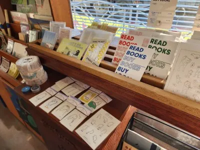 서점안착에는 대형서점에서 만날 수 있는 일반서적과 독립서적 모두 있습니다. 이곳에 오면 가장 좋은 점은 다양한 독립출판 서적을 실물로 보고 구입할 수 있다는 점입니다. 그림책, 포토북, 만화책, 잡지 등 다양한 장르의 책들로 가득합니다.