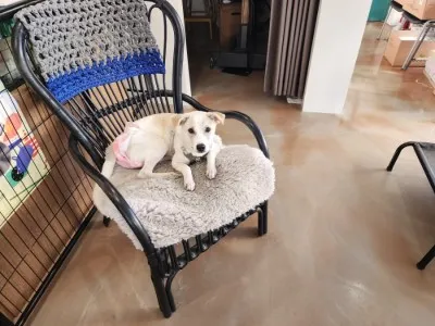 서점안착에는 평일에 출근한 ‘호미’(오른쪽)를 종종 만날 수 있습니다. 그런데 왼쪽 하얀 강아지가 새로 보여서 여쭤봤더니 근방에서 떠돌던 이 녀석을 구조해서 임시보호 중이라고 하네요. 서구에서 좋은 가족을 만날 수 있길 바라는 마음입니다.