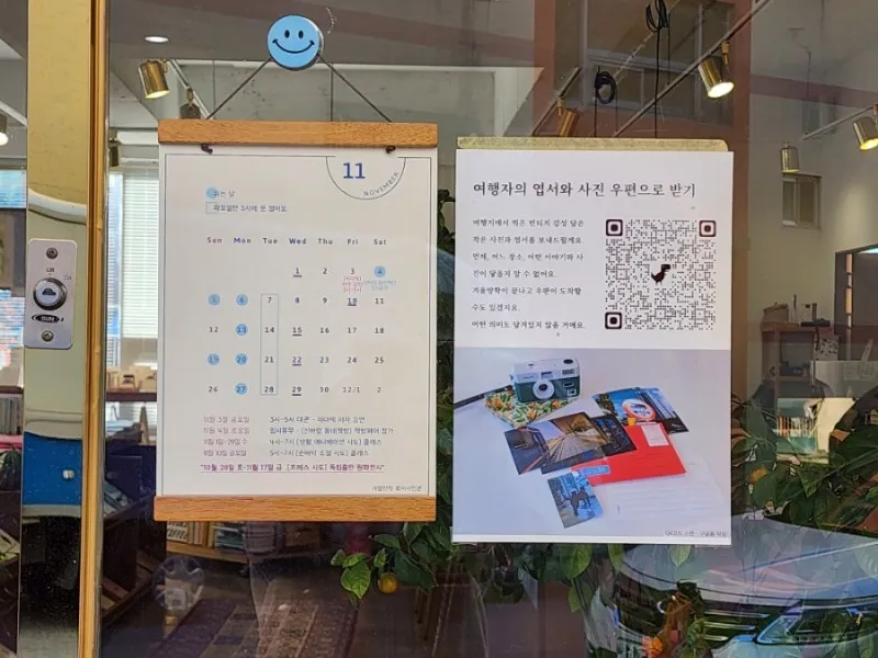 하지만 다양한 행사와 클래스도 열리는 공간이라 방문 전 공식 인스타그램으로 운영시간을 확인해 보시면 더욱 좋을 것 같습니다. 서점안착 입구에 월 운영 시간표가 있는데 11월은 화요일에 3시부터 오픈하고 일요일 휴무도 표기되어 있었습니다.