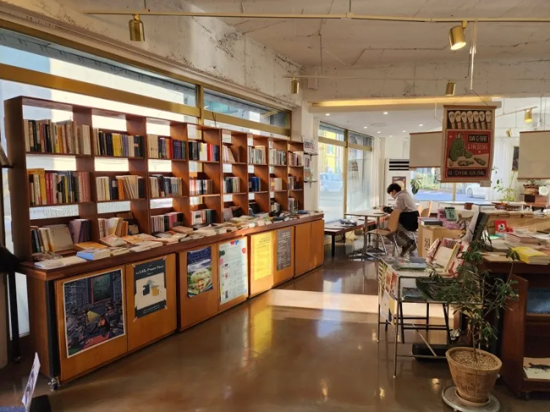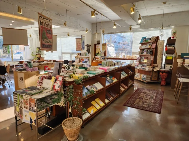 입구에 들어서면 많은 독립 서적과 일반 출판 서적이 보여 책을 읽고 싶은 의욕이 뿜뿜 올라옵니다. 😊 여러분도 사진 보고 느껴지시나요?