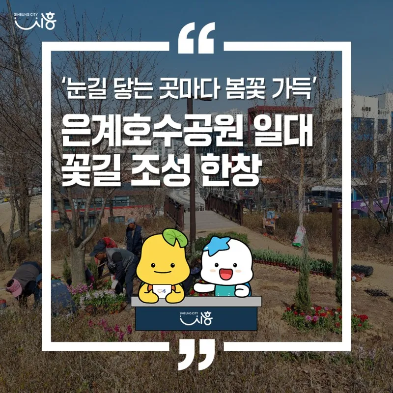 시 관계자는 “봄을 맞아 시민들이 꽃길 가득한 은계호수공원을 걸으며 힐링할 수 있는 기회로 삼길 바라는 마음에서 기획한 만큼, 은계호수공원이 시민 누구나 꽃의 아름다움을 향유할 수 있는 명소가 되길 바란다”며 많은 시민의 관심을 당부했습니다.