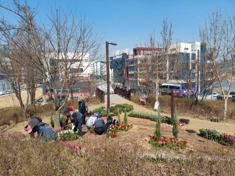 ‘눈길 닿는 곳마다 봄꽃 가득’, 은계호수공원 일대 꽃길 조성 한창
